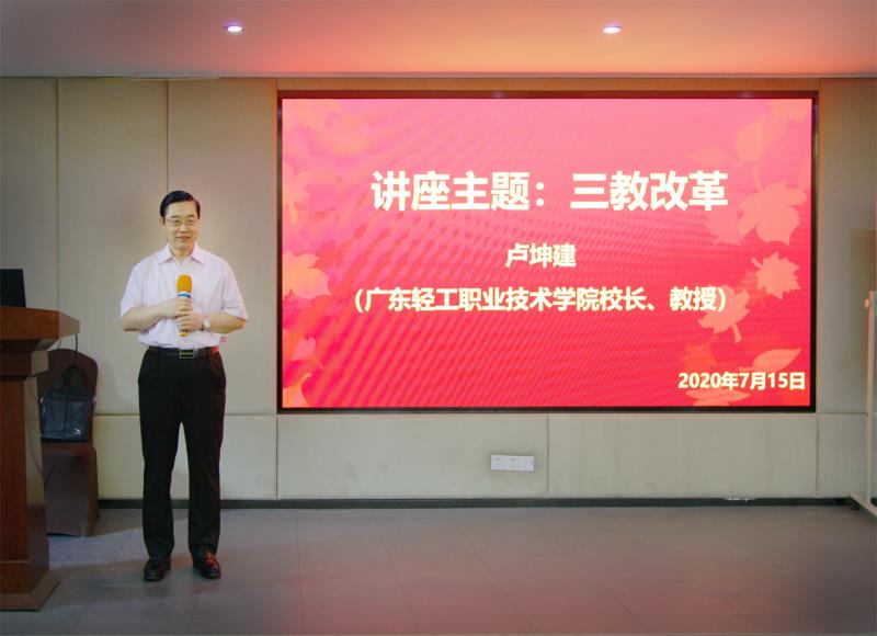 此次培训班旨在促进汕头职业技术学院教师专业成长,有效提升教师教学能力和职业素养。该项目受到我校领导的高度重视,卢坤建校长、李丽副校长、廖俊杰副校长、龚盛昭教授、蒋爱民教授、万俊副教授等校内外知名专家为该培训班授课。卢坤建校长以“三教改革专题讲座”拉开了这次培训的序幕,卢校长从高等教育的宏观指出:高等职业教育改革首先要解决观念问题,要求教师具有教育技术服务能力;其次是从三教改革的微观着手,通过“产教科”融合,以校企合作为抓手,促进教学满足产业的需求。李丽副校长回顾了学校的发展历程,分享了我校成功的管理经验,对重大事项,学校领导班子会交流充分,达成共识,并对任务进行解读,使广大教师有共鸣,形成合力,上下一心。廖俊杰副校长讲授专题为“‘双高’计划院校建设”,廖俊杰副校长带领学员共同研究了国家有关双高院校建设的有关政策变迁,并就如何建设国家双高提出了自己的经验和看法。国家名师、珠江学者龚盛昭教授介绍了高职院校教师教学创新团队的建设背景、政策、申报情况、团队组建情况,并以职教20条为切入点、分析“双高建设”计划、高职院校教师教学创新团队的逻辑关系。华南农业大学蒋爱民教授、广东农工商职业技术学院万俊副教授讲授在线开放课程建设,带领学员应用超星学习通进行教学和管理,并详细介绍了自己申报和建设国家级、省级精品在线开放课程,申报教学成果奖的做法。