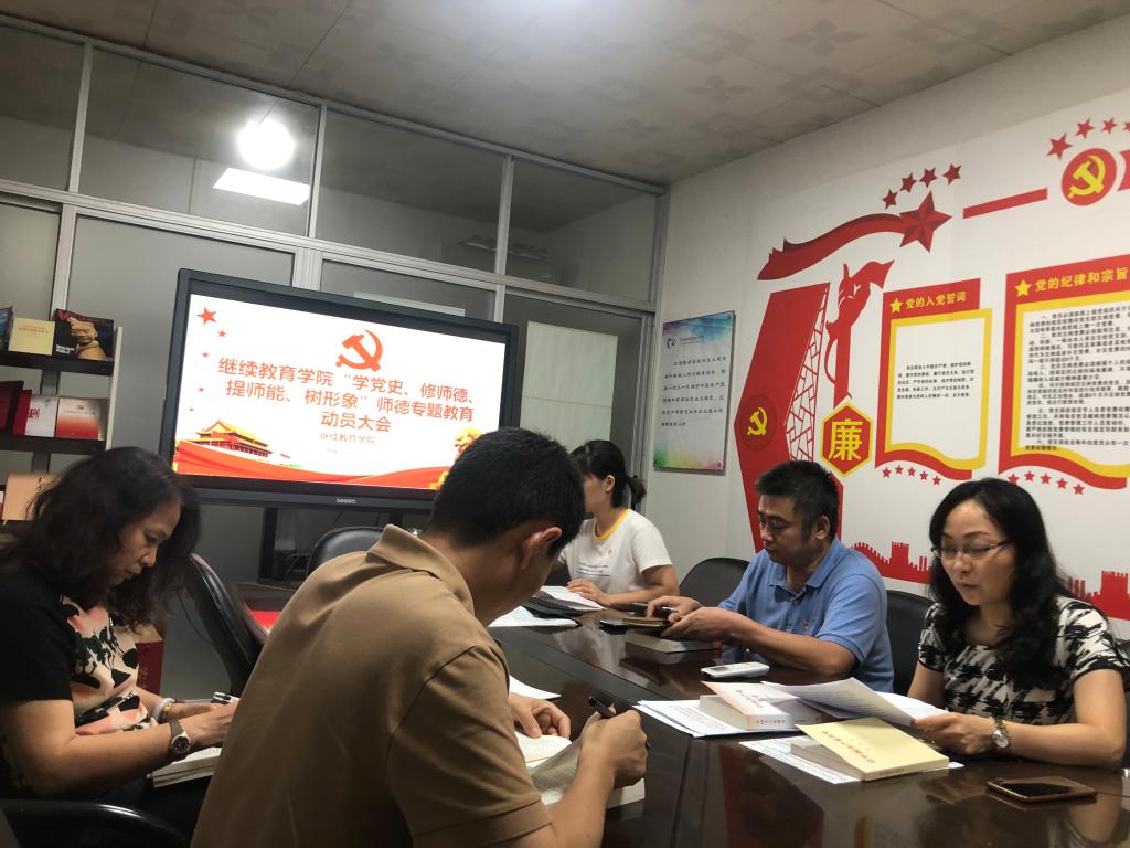 根据《广东省教育厅转发教育部关于在教育系统开展师德专题教育的通知》及学校《2021年师德专题教育方案》要求,2021年6月3日下午,继续教育学院在会议室召开了“师德专题教育”动员大会暨“党史学习教育”推进会。学院全体教职工参加学习,会议由学院党总支副书记张佩宜主持。