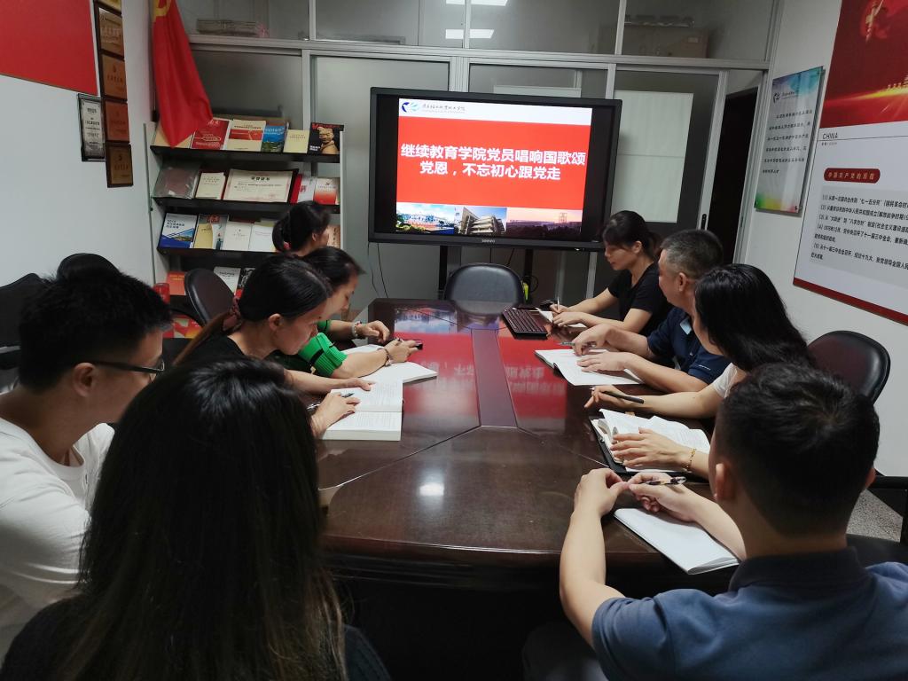 国歌代代传、歌声颂祖国。国歌是在时代的激荡中产生的,在作用于时代的同时,又成为记录时代的符号,它们的旋律里天然地留存着历史的印记。为歌颂党的伟大成就,展现教师党员良好的精神风貌,营造和谐、健康、文明的校园文化氛围,让教师党员铭记中国共产党革命历史,继承光荣传统,弘扬民族精神。7月16日上午,继续教育学院党支部组织开展以“不忘初心跟党走”为主题的唱响国歌活动。