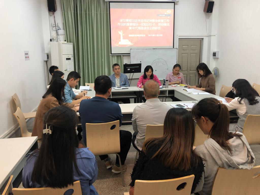 11月19日下午,继续教育学院党总支在学院103课室召开理论学习中心组(扩大)学习会议,学习《中国共产党第十九届中央委员会第六次全体会议公报》精神(以下简称《公报》)。会议由党总支副书记张佩宜主持,继续教育学院、总务后勤部全体教职工通过线上、线下方式参加会议。