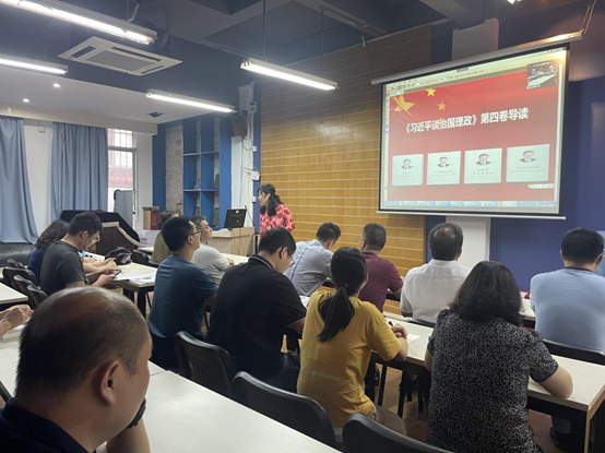 9月22日,继续教育学院党总支在继续教育学院102课室组织“第一议题”学习《习近平谈治国理政》第四卷。