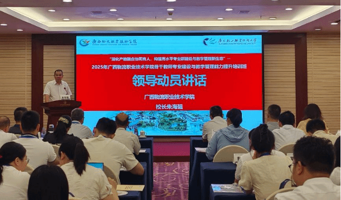 2025年8月23日上午,广西物流职业技术学院2025年骨干教师专业建设与教学管理能力提升培训班开班仪式在广州市总工会干部学校培训基地顺利举行。广西物流职业技术学院校长朱海强,我校党委委员、副校长官春平,继续教育学院院长陆英杰、副院长王瑶及广西物流职业技术学院50名骨干教师共同出席。仪式由继续教育学院林亚文老师主持。